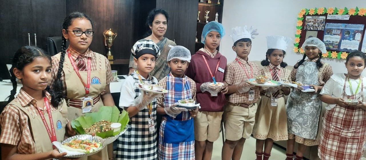 We organized a Little Chef competition without fire for Grade 4 and 5 with the theme ” Dahi puri ” and ” sprouts salad” was a fun and educational activity where the children participated with great enthusiasm and joy.